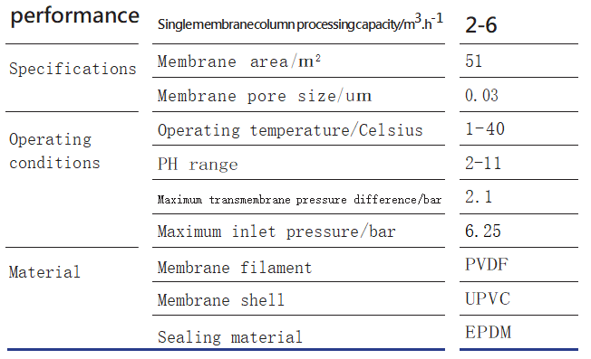 • The membrane filament has excellent chemical stability and can withstand high-concentration oxidizing agents.